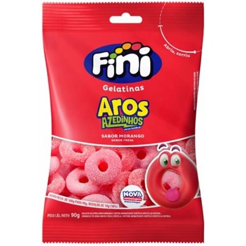 Bala Fini Gelatinas Aros Azedinhos Morango Embalagem 90g