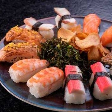 12 carioca de salmão tradicional + 10 uramaki de kani + 10 hossomaki de camarão cozinhado + 3 niguiri de salmão filadélfia
