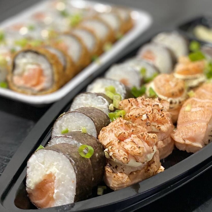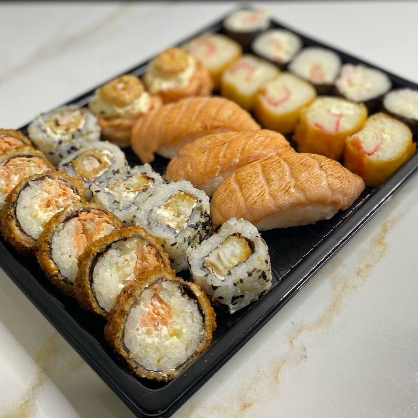 10 hossomaki de salmão filadélfia + 10 uramaki misto + 6 carioca de salmão filadélfia + 2 joy joy + 2 ebi joy + 2 joy bastão + 2 niguiri de salmão