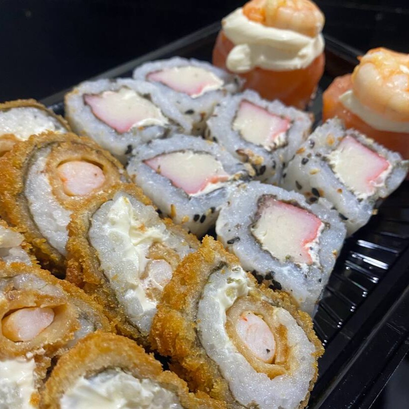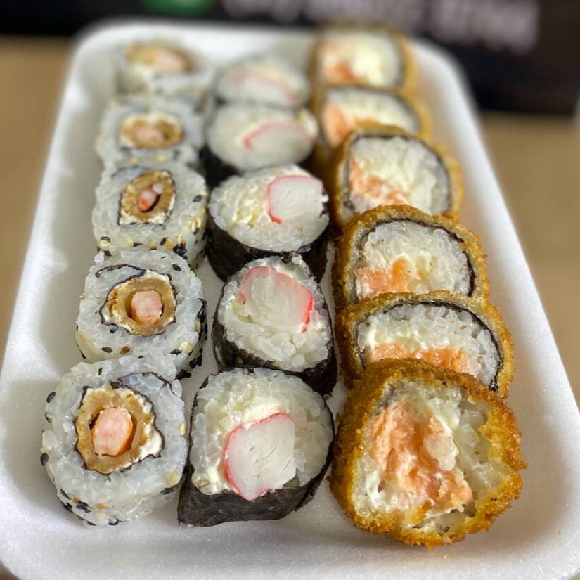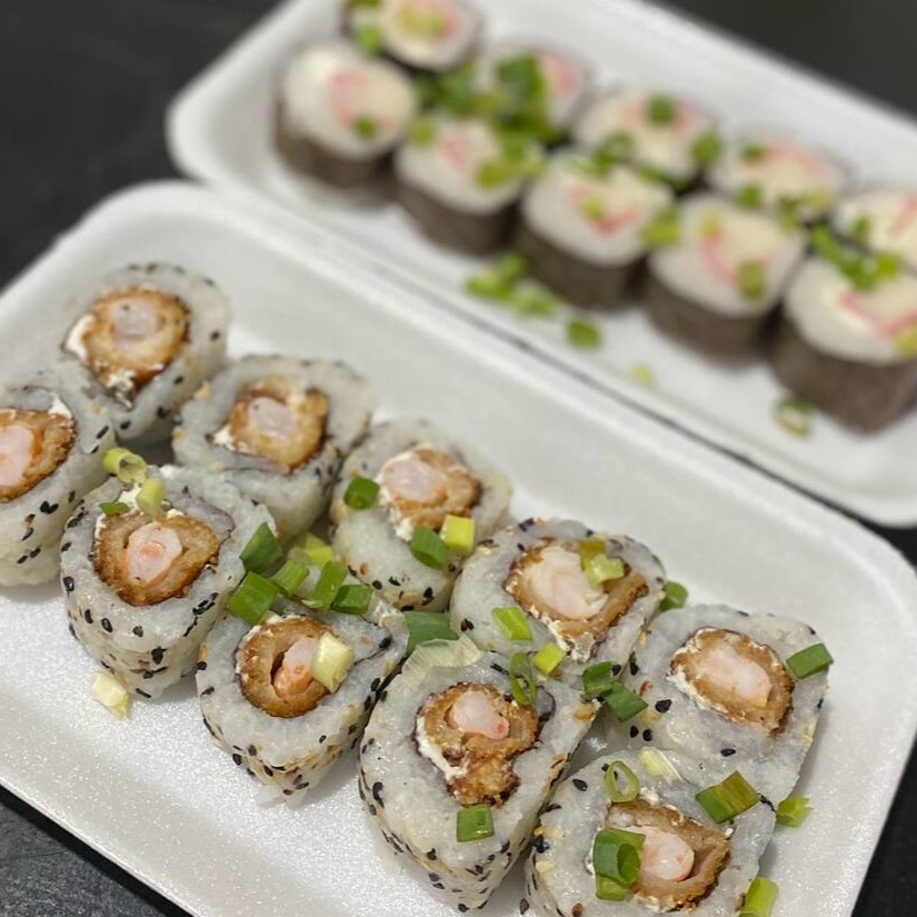 10 uramaki de camarão empanado + 10 hossomaki de kani