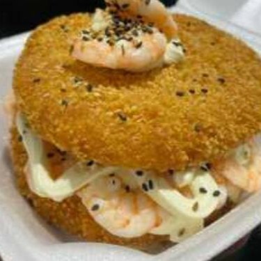 O nosso sushi burguer é super recheado e mata aquela fome, viu? Ele é montado com shari (arroz japônes) empanado e frito e recheado ao meio com creme cheese e sabor de sua preferência! :)