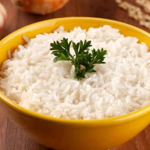 Arroz branco soltinho, perfeito para acompanhar qualquer prato do cardápio, um clássico da culinária brasileira.