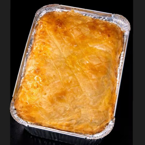 empadão de massa amanteigada, com frango e requeijão remoso.
