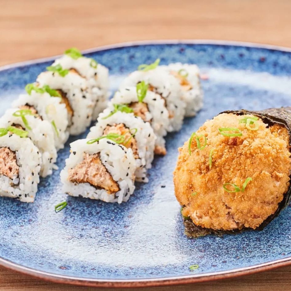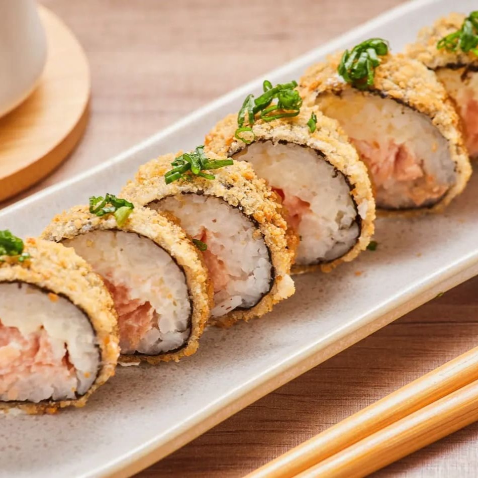 Dupla de temakis recheados com atum grelhado, empanados para uma crocância perfeita e finalizados com um toque especial de cebolinha e gergelim!