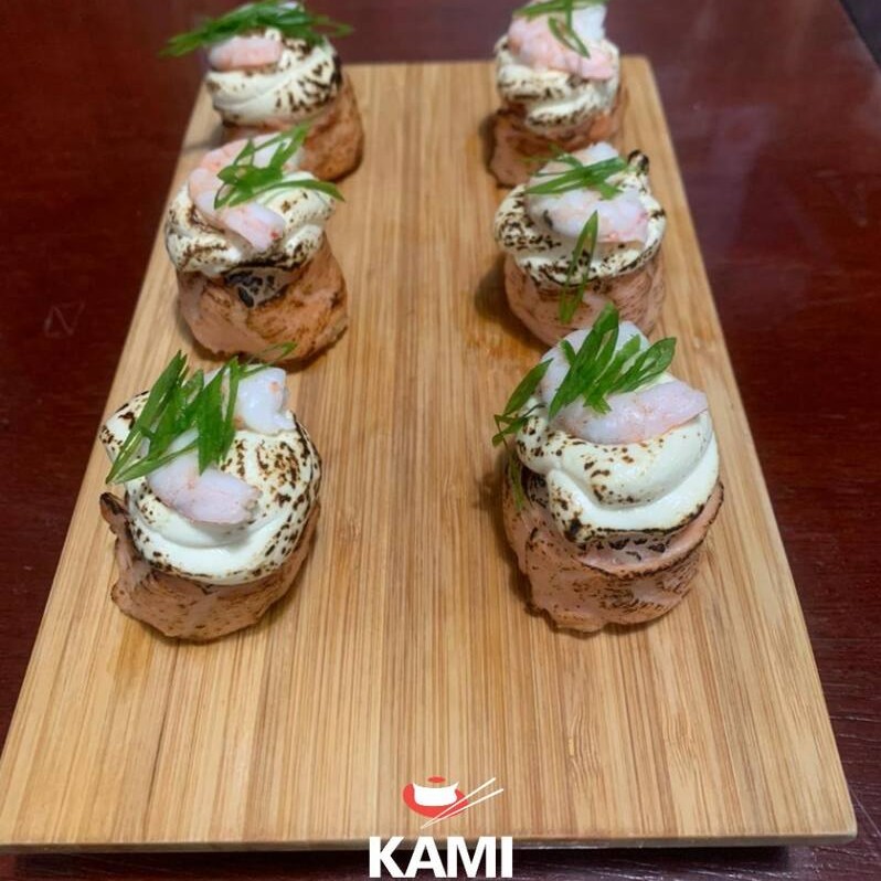 Lamina de salmão, arroz, camarão e cream cheese! (Maçaricado)