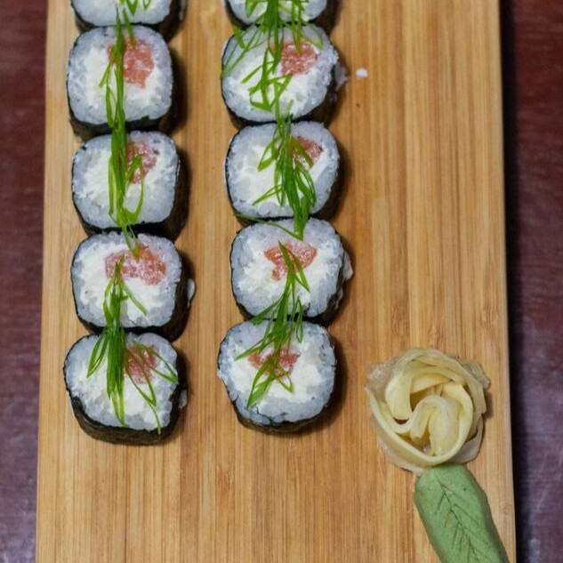 Alga, arroz, cream cheese, atum, cebolinha e gergelim!