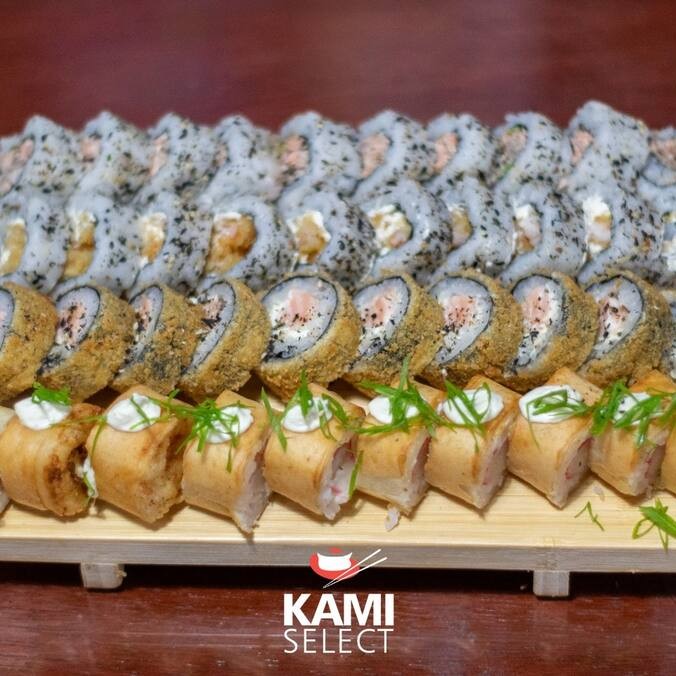 10 cariocas salmao - 10 hot harumaki de kani -10 uramaki camarão frito - 10 uramaki salmão gril
