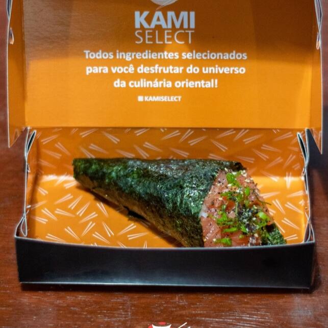 10 cariocas salmão - 10 hosomaki salmão - 12 uramaki de kani - 12 uramaki de skin - 2 nigiri salmão - 2 nigiri kani - 2 nigiri skin, 1 Temaki Skin