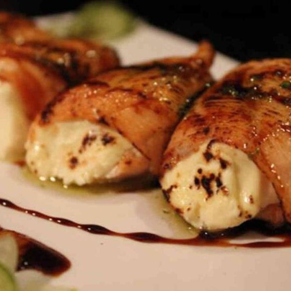 Manta de Salmão, recheada com arroz, cream cheese e camarão empanado. Aproximadamente 600 Gramas!