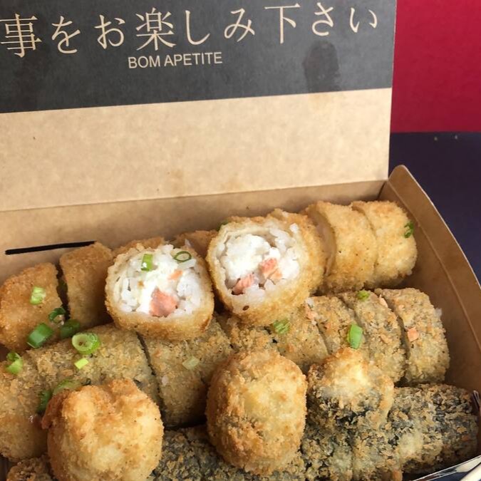 Temaki envolto na massa de rolinho primavera.