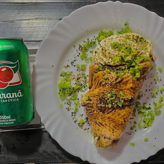 Salmão em cubos ou batido com cebolinha e creme x