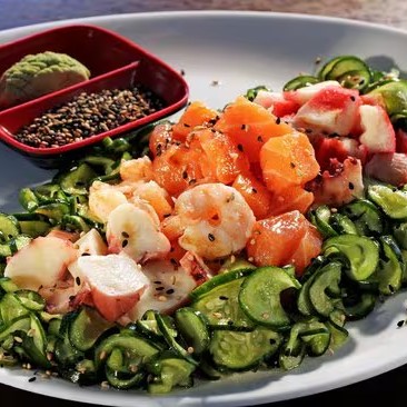 Desfrute da nossa Sunomono, uma entrada especial do Kami, que combina a crocância refrescante do pepino japonês com um molho agridoce irresistível. Esta salada, cuidadosamente preparada, é uma explosão de sabores que equilibra perfeitamente o frescor do pepino com a doçura e acidez do nosso molho especial. Uma opção saudável e deliciosa para começar a sua refeição.