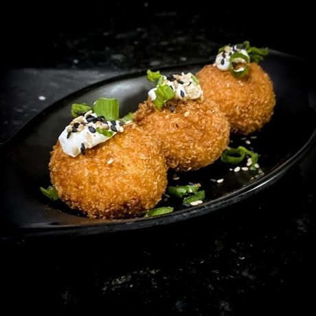 Camarões selecionados, recheados com cream cheese e empanados na farinha panko, garantindo crocância por fora e cremosidade por dentro. Um prato saboroso e equilibrado, que une a textura leve e crocante do empanado com o sabor marcante do camarão e a suavidade do cream cheese. (08 unidades).
