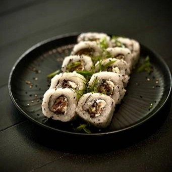 Arroz, astum envoltos no nori (Folhas de algas marinhas). (10 Peças) - Acompanha: 30ml de teriyaki e 1 sachê de shoyu