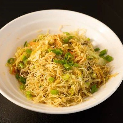 Macarrão de bifum, carne, frango e legumes.