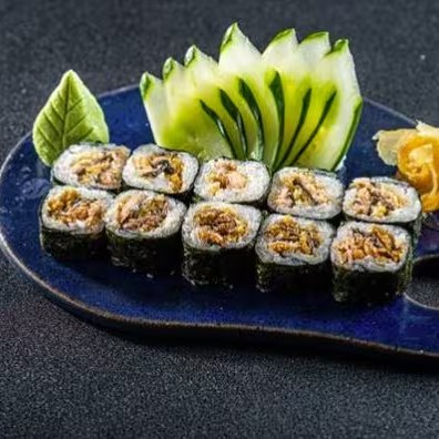Arroz, Skin E Cream Cheese, Envolvidos No Nori (Folha De Algas Marinhas) Empanado E Frito - Acompanha: 30ml de teriyaki e 1 sachê de shoyu