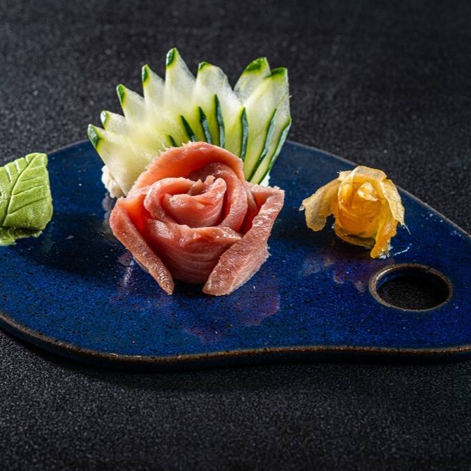 Lâminas de pepino japonês e atum em cubos. (Aprox. 300g)