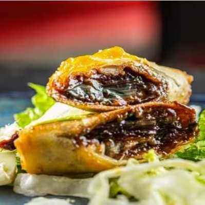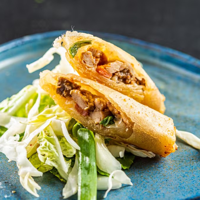 Massa de harumaki recheado de carne e verduras. (2 peças)