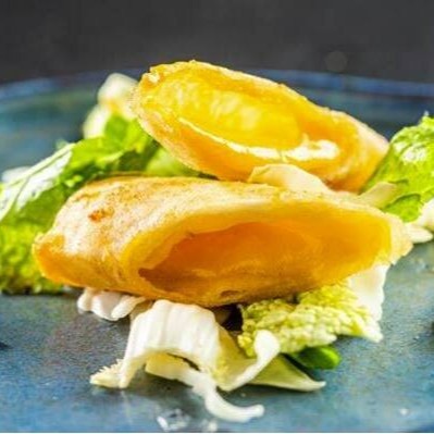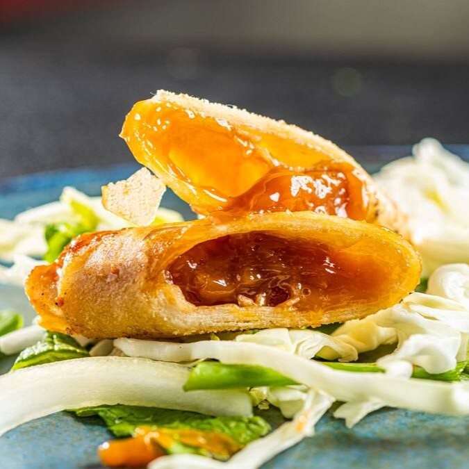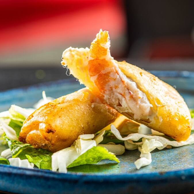 Pastinha de salmão e cream cheese com o tempero do chef, enrrolada e frita na massa harumaki.