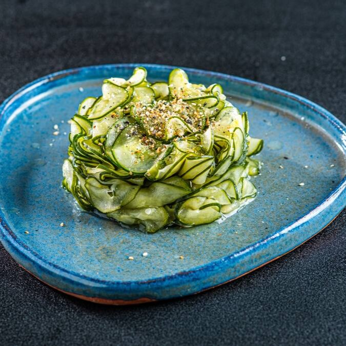 Lamina de pepino japones e camarão - Acompanha: 30ml de teriyaki e 1 sachê de shoyu