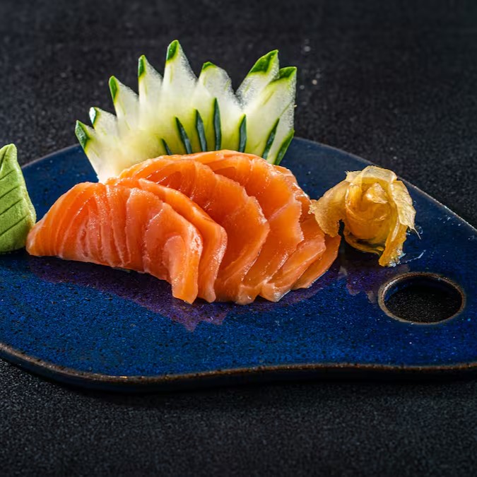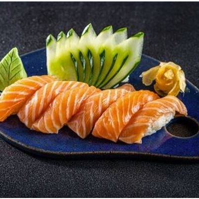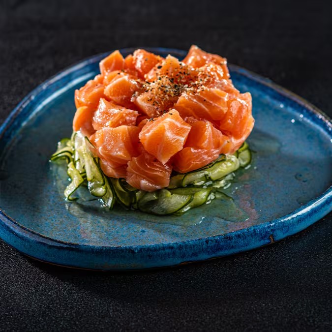 Lâminas de pepino japonês e salmão em cubos. (aprox. 300g)
