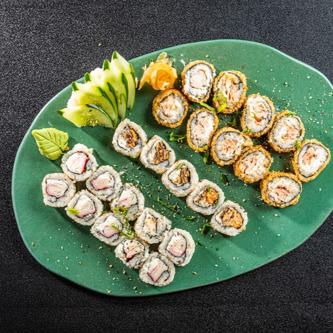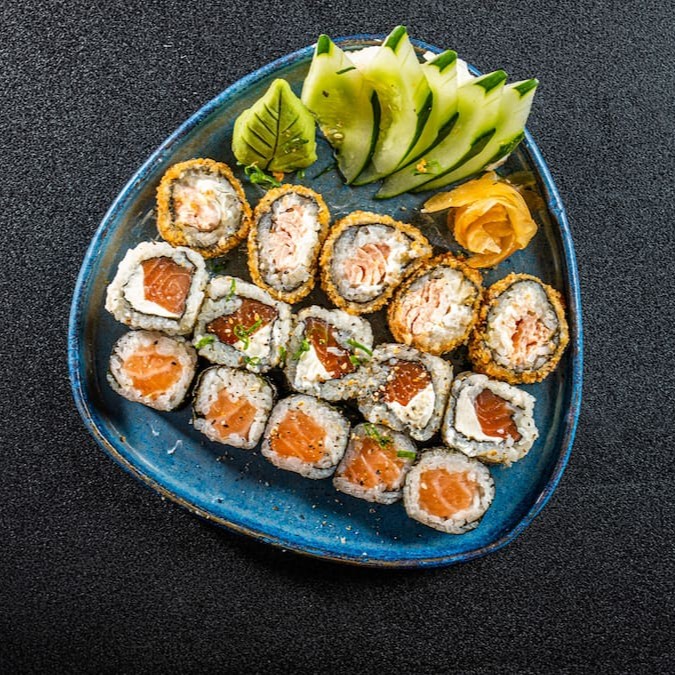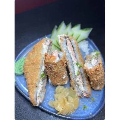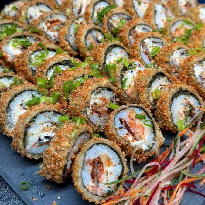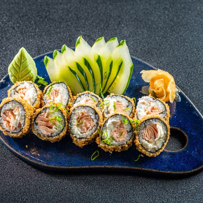 Arroz, recheio a sua escolha e cream cheese envolvidos no nori (folha de algas marinhas) empanado e frito. (10 peças)