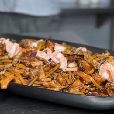 Macarrao Grano Com Tiras De Carnes, Frango E Legumes Cozido Ao Molho Da Casa - Acompanha: 30ml de agridoce. Serve aprox de 4 a 5 pessoas.