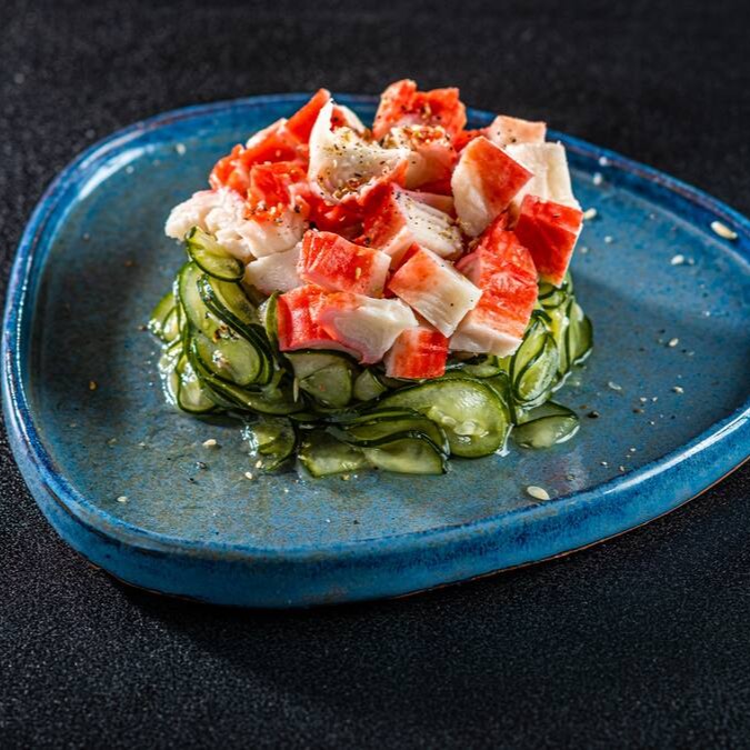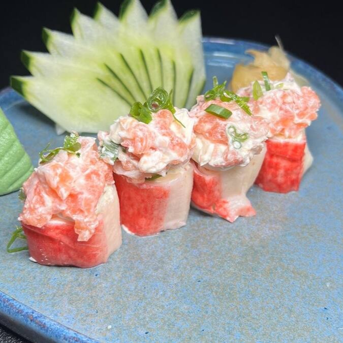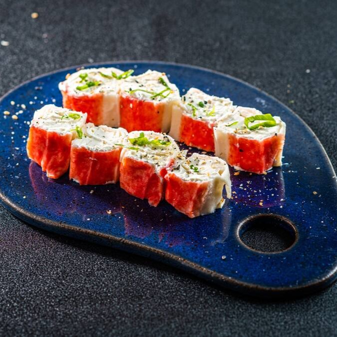 Lâmina de kani com cream cheese e pasta de salmão. (8 peças)
