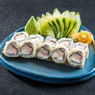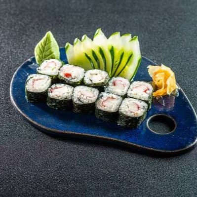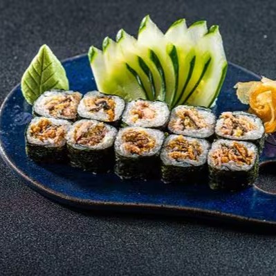 Arroz e skin envolvidos no nori (folha de algas marinhas). (10 peças)