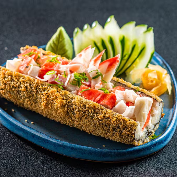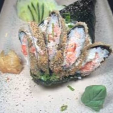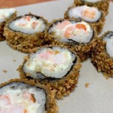 Arroz, kani e cream cheese envolvidos no Nori (folha de algas marinhas) empanado e frito. (10 peças) - Acompanha: 30ml de teriyaki e 1 sachê de shoyu