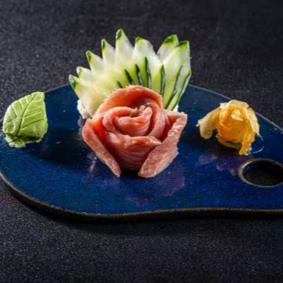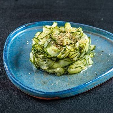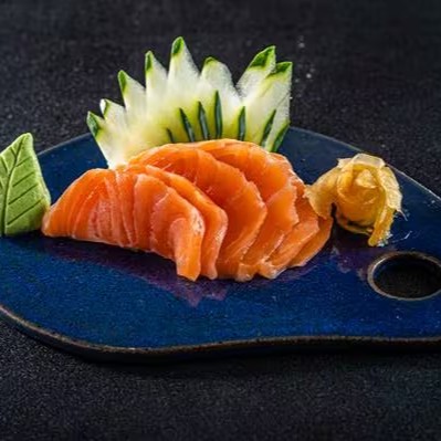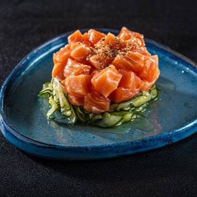 Lâminas de pepino japonês e salmão em cubos. (aprox. 250g)