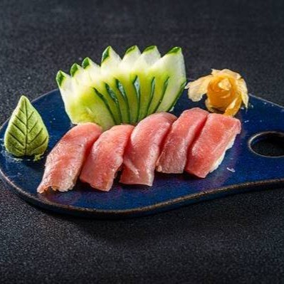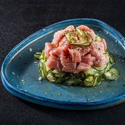 Lâminas de pepino japonês e atum em cubos. (Aprox. 250g)