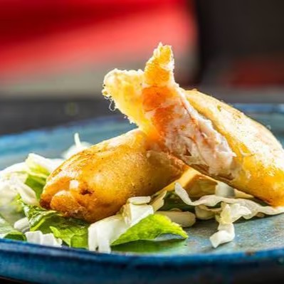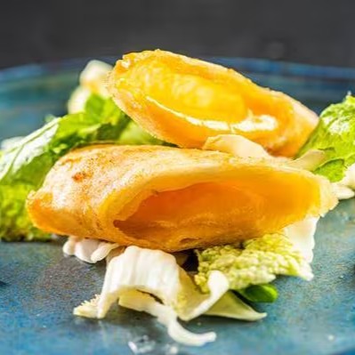 Massa de harumaki com kani e cream cheese. (10 unidades) - Acompanha: 30ml de teriyaki e 1 sachê de shoyu