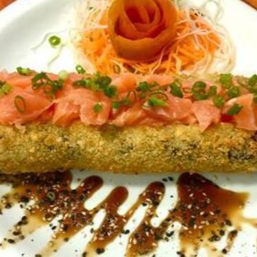 Arroz, salmão e cream cheese envolvidos no Nori (folha de algas marinhas) empanado e frito. Acompanha: 30ml de teriyaki e 1 sachê de shoyu