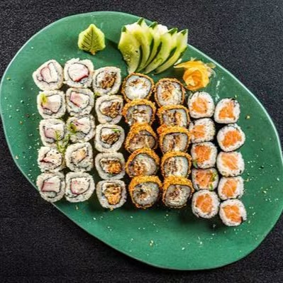 5 kani e queijo, 5 dragon, 5 joy joy, 5 ebi joy, 5 kani e queijo empanado e 5 sashimi. (Não modificamos itens desse combinado). Acompanha 2 molhos shoyu sachê 10ml e 2 molhos teriyaki 30ml