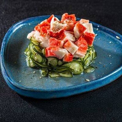 Lâminas de pepino japonês e kani em cubos. (aprox. 250)