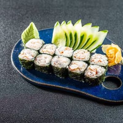 Arroz, kani e cream cheese envolvidos no Nori (folha de algas marinhas) empanado e frito. Acompanha: 30ml de teriyaki e 1 sachê de shoyu(10ml)