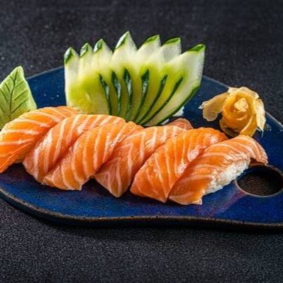 Bolinho de arroz prensado com lâmina de salmão. (6 peças)