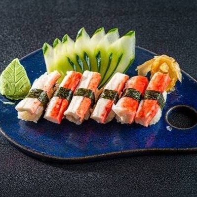 Bolinho de arroz prensado com lâmina de kani. (6 peças)