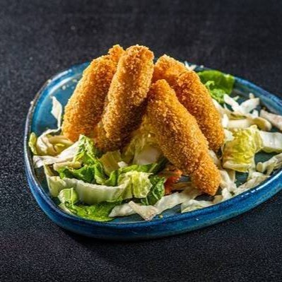 Lâmina de kani com cream cheese empanado. (8 peças)