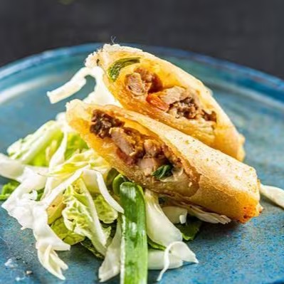 Massa de harumaki recheado de carne e verduras. (2 peças)