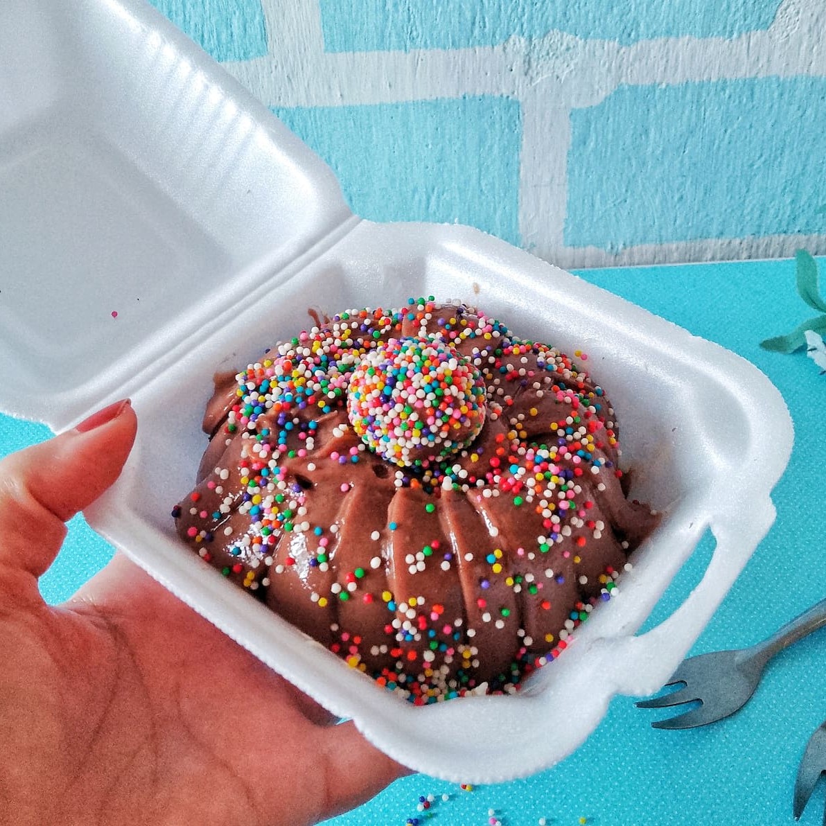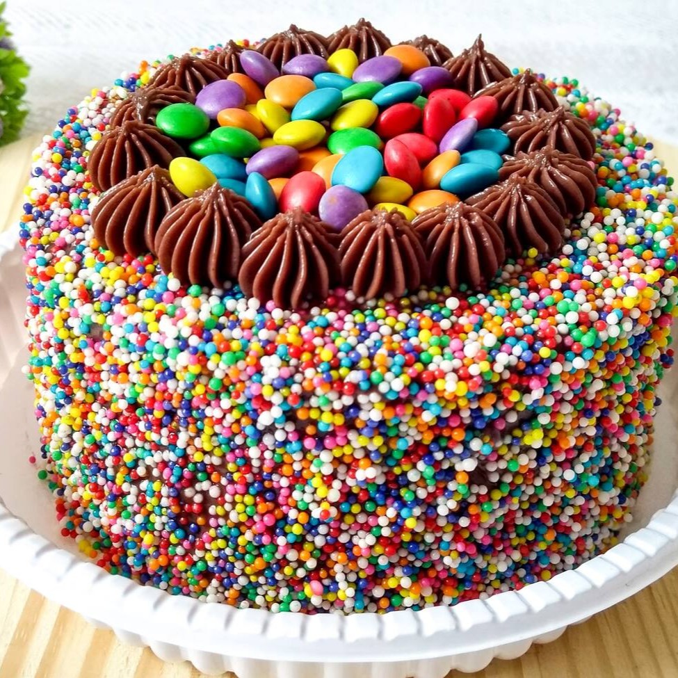 Um bolinho perfeito para pequenas comemorações ou até mesmo para presentear alguém querido. Com uma massa úmida e fofa de chocolate e um delicioso recheio de brigadeiro tradicional. Decorado com confeitos colorido. Aprx 500g Atenção: para uma maior segurança no transporte os bolos vão enrolados com acetato para diminuir os riscos de chegarem quebrados. Há risco do bolo deslizar no transporte de moto pelo Ifood, dependendo da distância e do percurso do entregador. Em caso de dúvidas, entrar em contato. Mini Bolo, Bolo de brigadeiro, Bolo barato