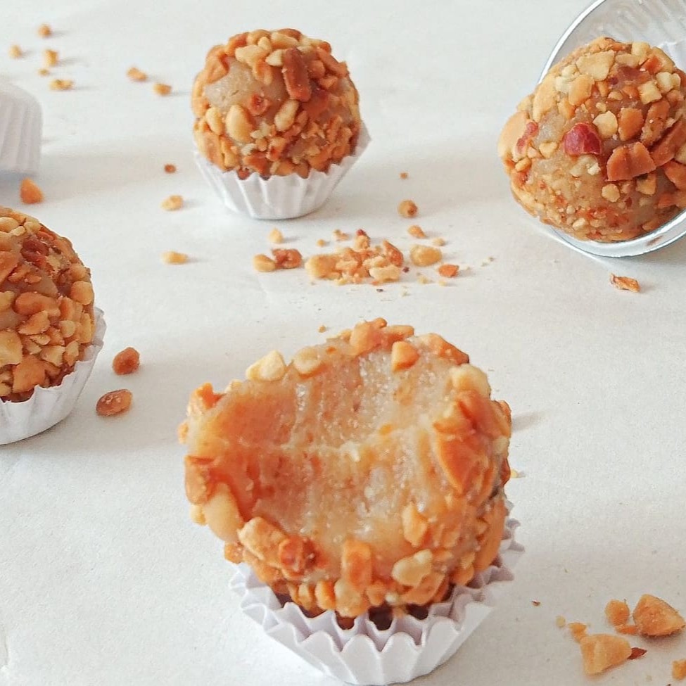Brigadeiro de amedoim, envolto em amedoim triturado. Peso unid: 15g