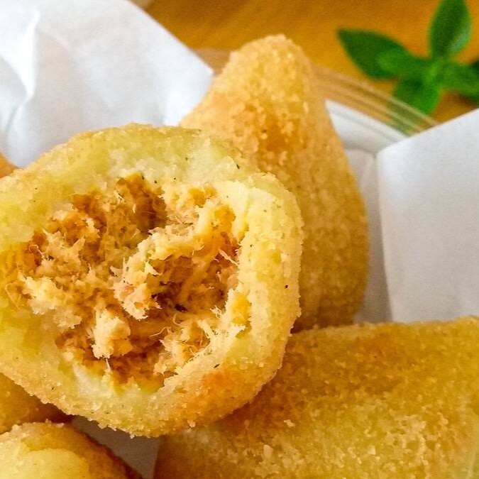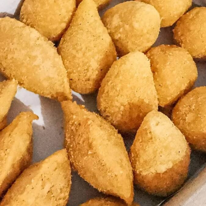 Massa extremamente temperadinha você só encontra aqui! Bem sequinha, ela é recheada com frango! Surreal, apenas peça. 10 unidades de coxinhas de frango fritas na hora.
