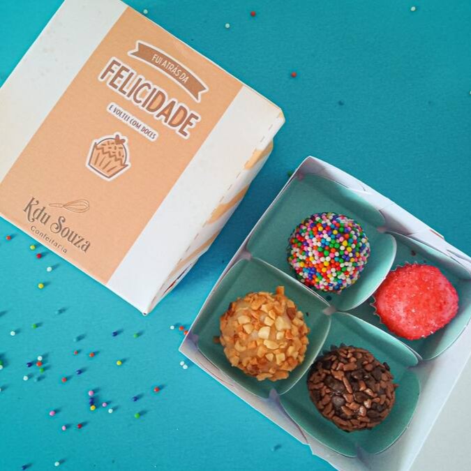 Perfeita para adoçar o dia! Nossa caixinha vem com 4 unidades de deliciosos brigadeiros gourmet de 15g cada. Escolha seus sabores preferidos entre: Brigadeiro Tradicional, Moranguinho, Bem Casado, Ouriço ou Beijinho. Ideal para presentear, se deliciar ou acompanhar aquele cafézinho.