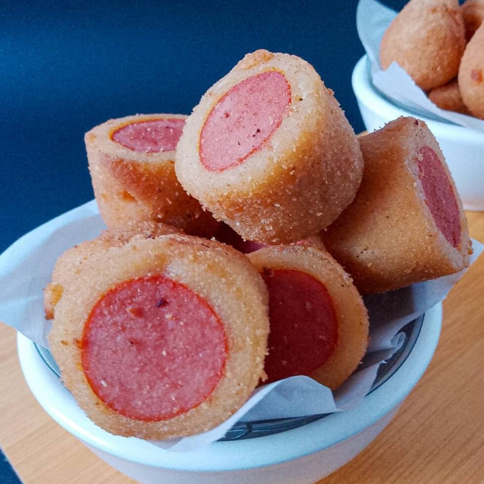 Porção com 8 unidades de cubinhos crocante de enroladinho de salsicha, uma boa pedida para seu lanche da tarde. 30g cada unid