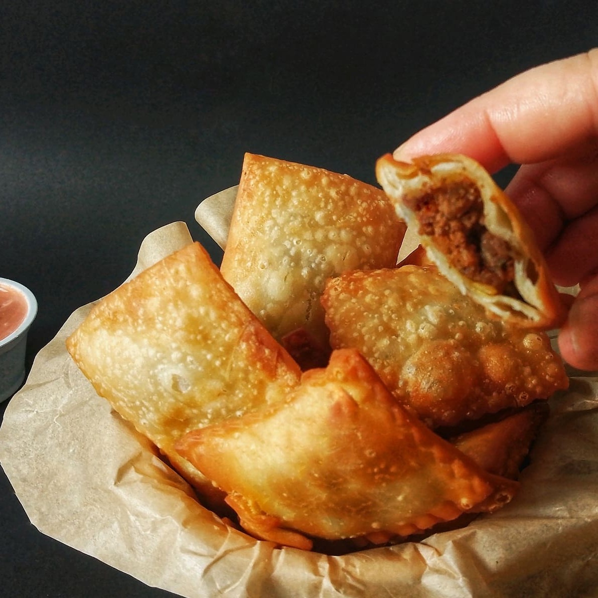 Porção de mini pastéis com 10 unidades: perfeita pra dividir (ou não)! Peça já e aproveite essa delícia!