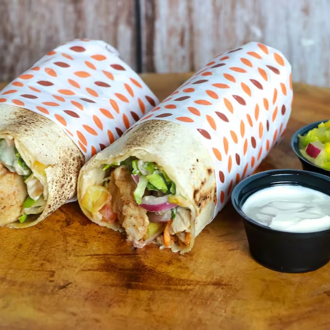 Original sanduíche turco feito com fino pão sírio artesanal levemente tostado, filé de frango marinado em especiarias e assado na chapa, cebola roxa, alface, tomate, cenoura na manteiga. Acompanha 1 opção de molho à parte.