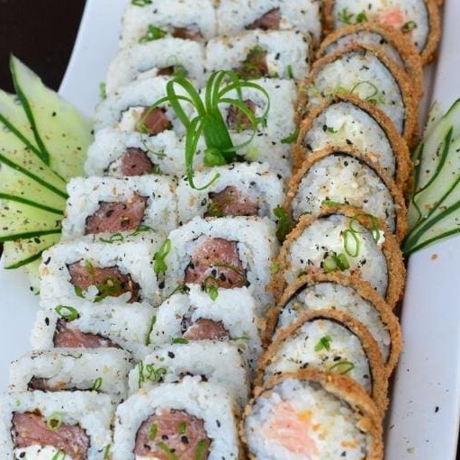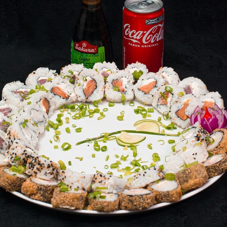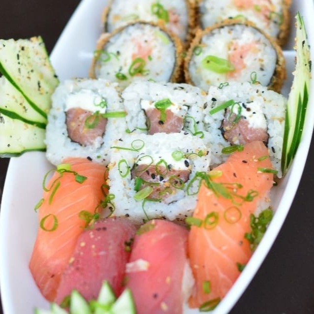10 carioca, 7 niguiris sushis, 3 jo jo, 10 uramakis, 10 hossomakis. Sushiman faz um mix com todos os peixes disponiveis na casa (salmão, atum, peixe branco, kani e skin). ️ Pode variar conforme o Dia (opção de retirar um sabor).