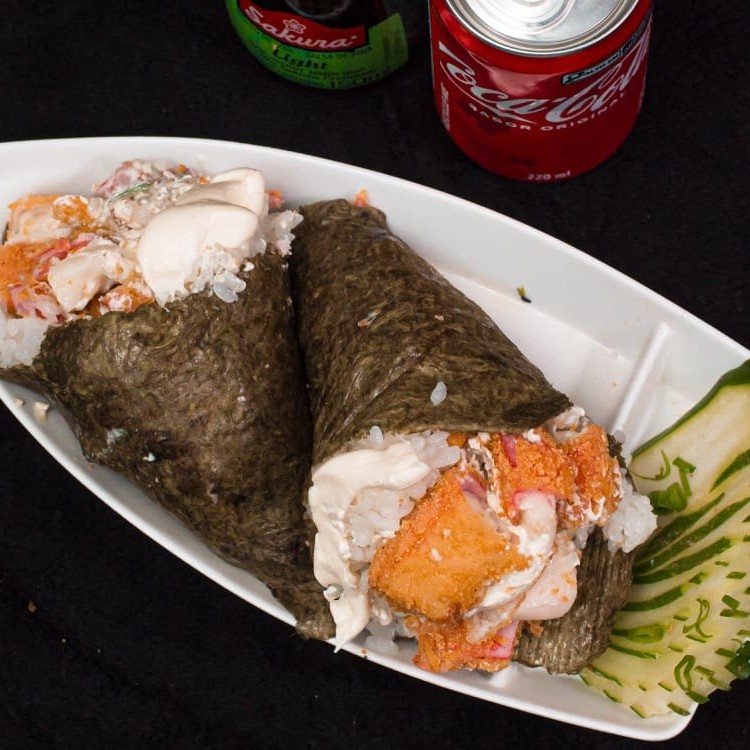 2 total de unidades de temaki Philadelphia com recheio de Kani empanado